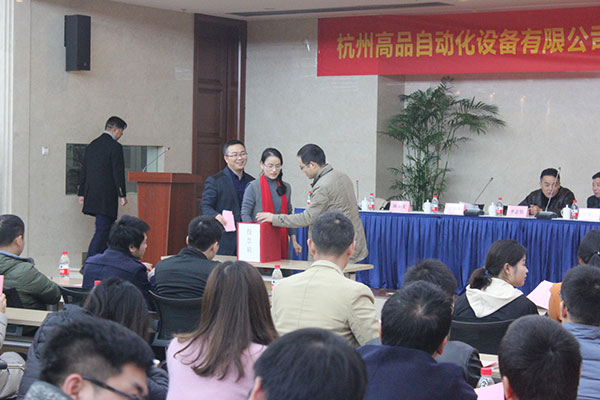 12月11日,杭州高品自動化設(shè)備有限公司召開工會首屆代表大會暨成立大會。未來科技城總工會主席李志堅(jiān)、副主席羅洪昌,杭州高品副總經(jīng)理陸瑞娣、徐順士、陳本先,及高品的185名代表參加了會議。
